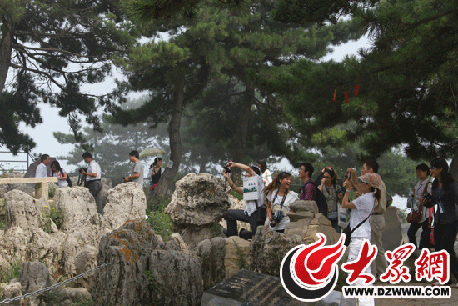 在導(dǎo)游的引導(dǎo)下,采訪團(tuán)一行來到了景區(qū)的一處觀景臺上,放眼望去,只見四周都是千姿百態(tài)的奇峰石林,它們座座拔地而起,尤如一根根頂天立地的石柱,遠(yuǎn)遠(yuǎn)看去又象一道道海浪,在霧靄云海中爭奇競險(xiǎn)。更妙的是,在這些石峰之巔,均有參天的青松翠柏復(fù)蓋,在絕壁石隙間,亦有彎曲多姿的古樹凌空延展。加之有奇花異草,百鳥爭鳴,令人目不暇接。 那些臨風(fēng)飄渺的云海在風(fēng)的推動下飄到人的臉上,給人以涼爽的感覺。看到這動人的美景,記者們紛紛拿起手中的相機(jī),或定格美麗的風(fēng)景,或記錄下這一刻的感動。