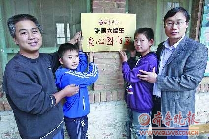 當眾人將5000多冊圖書全都搬下車時,簡陋的校舍幾乎被占滿,本報首個“張剛大篷車”愛心圖書室也在這間略顯簡陋的校舍里掛牌成立了。在大人的幫助下,兩個小朋友把寫有“齊魯晚報張剛大篷車愛心圖書室”字樣的銅牌掛到墻上,一旁老師們也都會心地微笑,“新的學校還沒建好,沒想到新的圖書室先有了。”