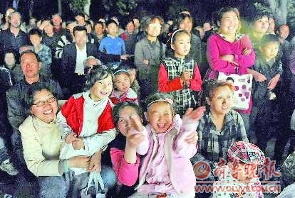 來自洪樓附近的市民張亞宏老兩口帶著孫子老早就來到現(xiàn)場占座位!拔业谝惶煸趫蠹埳峡吹筋A告之后,就跟孫子說好了要帶他來看皮影戲,今天早晨一看下雨,把孩子急壞了。”張亞宏8歲的孫子張永寧已經跟爺爺商量好,就算是下雨也要來看演出!拔野延暌露紲蕚浜昧耍灰莩瞿苷_M行,我們就一定來看!睆垇喓暾f,傍晚雨一停,可把他和孫子高興壞了,他們早早就帶著馬扎來把座位占好了。