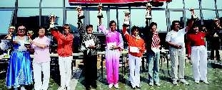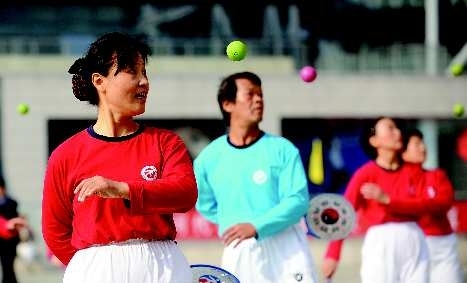 [提要] 6日,由本報(bào)“張剛大篷車”與濟(jì)南市全民健身中心主辦、白云山和黃中藥協(xié)辦的濟(jì)南首屆柔力球大賽落下帷幕。比賽間隙,濟(jì)南鐵路局俏夕陽(yáng)隊(duì)的幾名隊(duì)員帶來(lái)了優(yōu)美的秧歌表演,黃河隊(duì)的兩名隊(duì)員還展示了陳氏太極56式。