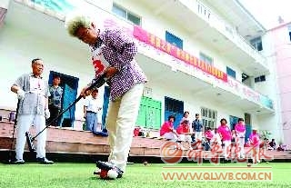 晚上的節(jié)目精彩,白天的比賽同樣熱鬧。16日,在濟柴社區(qū)門球場上,包括濟柴門球隊在內(nèi)的5支門球隊在這里同場競技。看上去平靜的比賽,對這些隊員們來說卻是緊張得很,5支高水平的隊伍輪番角逐,打得難解難分。不過,下午一場突如其來的大雨打斷了最后的決賽,“運動員”們不得不將“戰(zhàn)場”轉(zhuǎn)移到了室內(nèi),比賽項目也從門球變成了打牌。