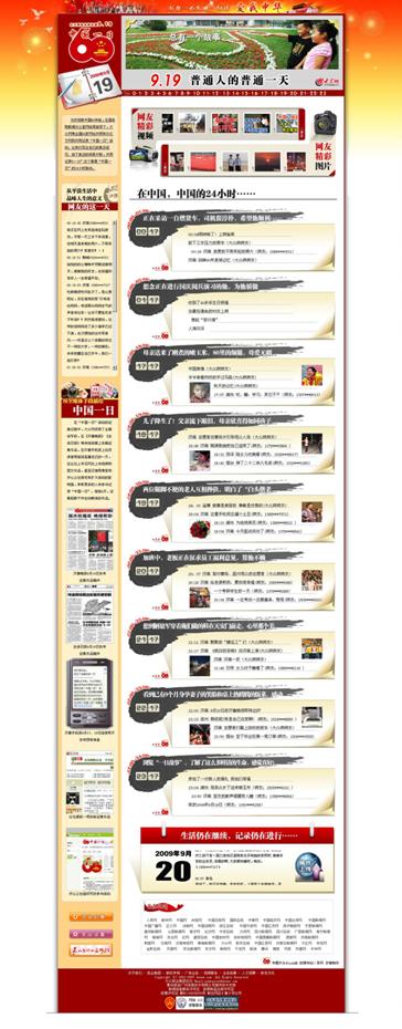 終于在大家的共同努力下,《中國一日》專題隆重登場了,它運用了音樂、動畫,圖片、視頻、文字的綜合表現手段,頁面設計構思新穎,生動活潑又具有較強的沖擊力,色彩柔和親切。它以日記的形式,突出了”中國一日”的主題思想。專題還借助論壇,博客,手機報等渠道,充分發揮了網絡優勢,激勵了廣大網友的參與熱情,記錄了9.19平凡一天的生活點滴,文字是平凡的,但情感是動人的。