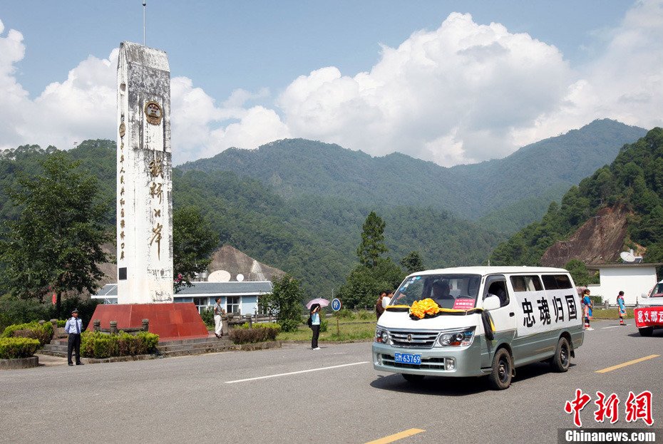載有遠征軍將士骨灰的靈車自騰沖猴橋口岸入境。中新社發 張丹 攝