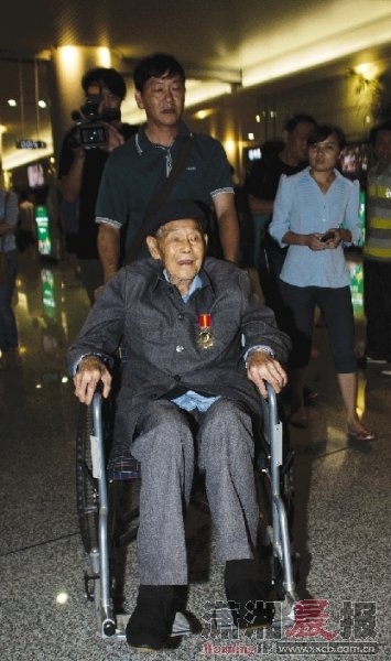 昨日凌晨0點42分,黃花機場,當曾輝乘坐的輪椅駛出機場出口的那一刻,等待在出口外的志愿者和市民報以熱烈的掌聲,“歡迎抗日老兵回家!”