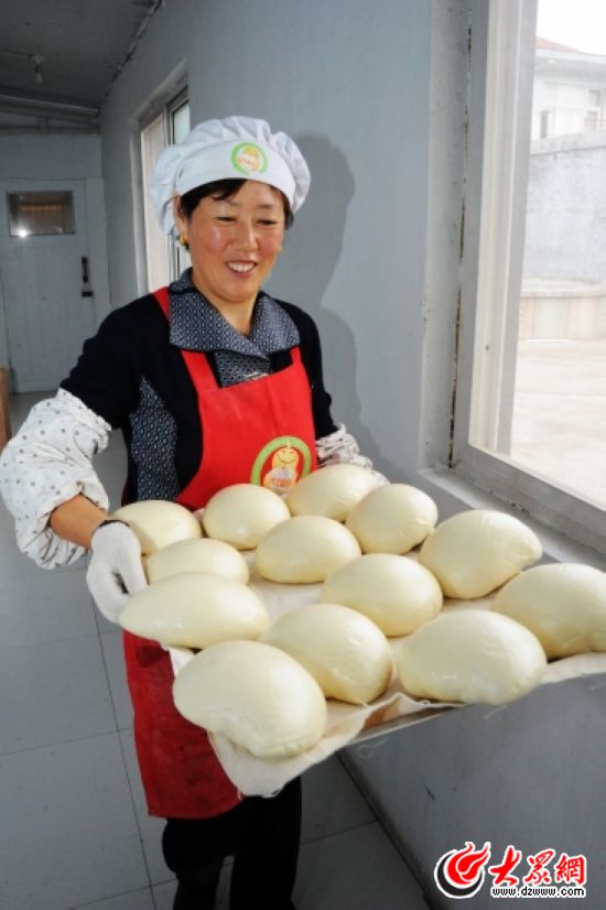 70歲的陳大媽,家住王哥莊楊家村,從年輕一結婚就開始學著做饅頭,至今有近50個年頭。去年六朵金花研發中心一成立,勤快硬朗的陳大媽在得到子女的支持后,也加入了研發中心的隊伍,成了這里面年齡最大的員工。談起來做饅頭,她高興地告訴記者:“我孩子的工作都很好,有的在市里做生意,有的在北京上班,但是我覺得能到社會上工作很開心。為了能做出讓更多的人喜歡吃的饅頭,我和孩子們說了我的想法,他們都很支持我,出來做饅頭已經有兩個年頭了,就圖個開心!标惔髬屵告訴記者,在這里做饅頭和家里不一樣,不僅用的面好,而且壓面機壓出的面也比在家里揉的好,火候掌握的也好,每到臨近過年,饅頭熱銷、供不應求,大家伙都從早上六點起來做饅頭,有的時候都要忙到晚上十一二點呢。