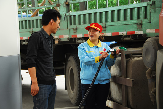 劉學霞在6站為客戶加油。