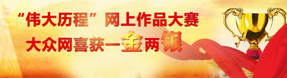 由中宣部、國家互聯網信息辦公室、中央文明辦、中央黨史研究室、教育部、團中央等聯合指導,百家網站共同參與的慶祝中國共產黨90周年“偉大歷程”網上作品征集評選已結束,共評出214件獲獎作品。其中,大眾網選送的視頻作品《黨旗漫卷中國紅》獲DV類作品金獎,網友胡爽的《聆聽》、網友王恩懷的《中國紅》獲攝影類作品銀獎。大眾網選送的視頻作品《黨旗漫卷中國紅》獲DV類作品金獎,網友胡爽的《聆聽》、網友王恩懷的《中國紅》獲攝影類作品銀獎。