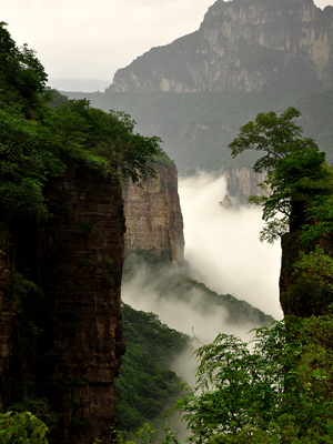 從河南新鄉(xiāng)輝縣市縣城向西北的南太行深處進(jìn)發(fā),沿途都是迷人的風(fēng)景——回龍、關(guān)山,還有著名的八里溝。不過(guò),正如《大河報(bào)》首席記者于茂世所言,“最險(xiǎn)、最美的風(fēng)景,則在路的盡頭,在最后出現(xiàn)的九蓮山上”,這正應(yīng)了古人那句名詩(shī),“無(wú)限風(fēng)光在險(xiǎn)峰”。