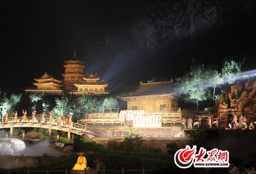 大眾網登封7月12日訊(見習記者 馬鑫)光影交錯,音畫合一,在數百僧侶的現場唱誦下,在春夏秋冬的景觀變化中,直指心性的佛樂禪音,合成了中岳嵩山輝煌的交響。晚上8:00“印象河南”采訪團一行來到嵩山腳下,欣賞了由譚盾擔任藝術總監和音樂原創的《禪宗少林·音樂大典》大型文化演出。