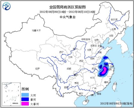 中新網(wǎng)8月9日電 據(jù)中央氣象臺消息,中央氣象臺今日10時發(fā)布暴雨黃色預(yù)警,預(yù)計9日14時至10日14時,江蘇北部和西部、安徽大部、江西北部、浙江西部等地有大到暴雨,其中,安徽東南部、江西東北部等地的部分地區(qū)有大暴雨(100~200毫米);上述部分地區(qū)并伴有雷暴大風(fēng)等強對流天氣。