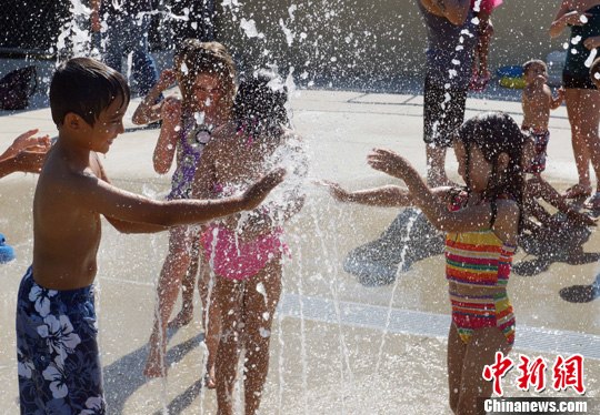 [提要] 當地時間8月8日,洛杉磯兒童在家長的陪伴下嬉水消暑。中新社發 毛建軍 攝 連日來,洛杉磯籠罩在新一輪的高溫天氣中,人們持續被白晝的90華氏度至100華氏度的高溫天氣困擾,美國國家氣象局也發出了“極熱”警報。