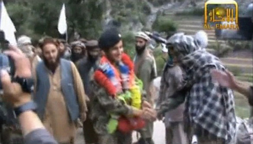 [提要] 塔利班公布的視頻顯示,一名阿富汗士兵在槍殺美軍士兵后受到塔利班英雄般歡迎(視頻截圖)  國際在線專稿:據英國《每日郵報》8月8日報道,塔利班日前公布的一段視頻顯示,一名阿富汗士兵在槍殺美軍士兵后受到塔利班英雄般歡迎。視頻顯示,一個名為馬穆德(Mamood)的阿富汗士兵脖子上戴著花環,全副武裝的塔利班分子向其歡呼問候,還有人上前與他握手擁抱。