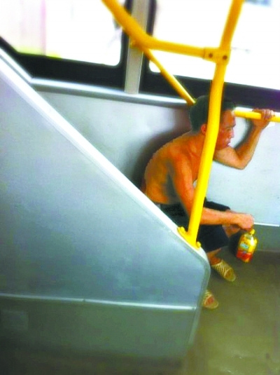 昨日上午10時多,羅小姐乘坐811路公交,車停雄楚大道某站時上來一位上身赤膊、腳穿涼拖、滿身大汗的農民工,“當時公交第一層還有很多空座位,我看到他前門上車,環視了一下車廂,猶豫了一下還是跑到樓梯的臺階上坐著。”