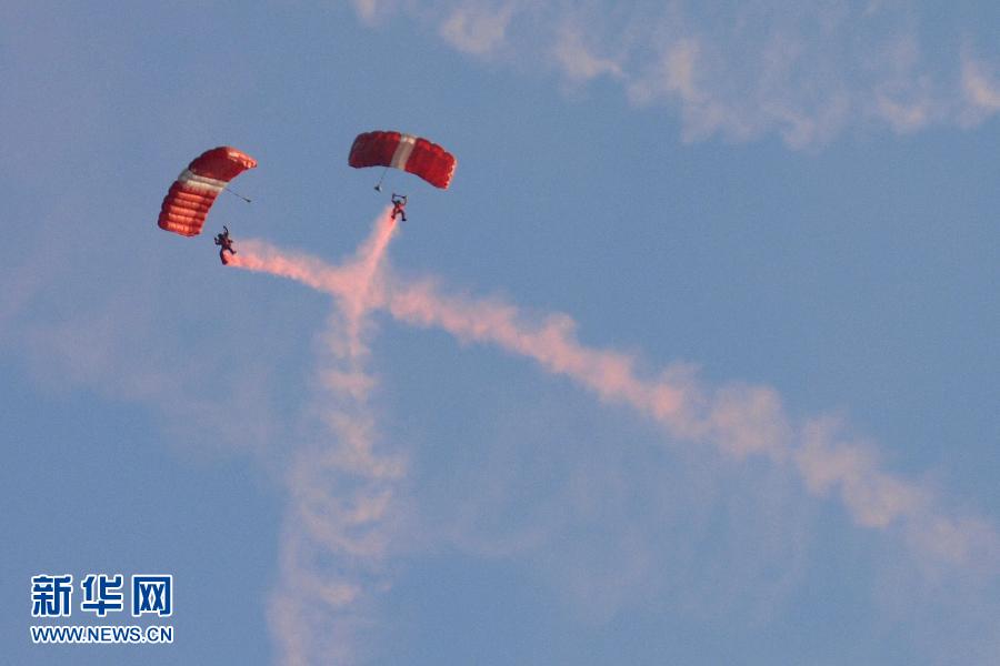 [提要] 8月9日,新加坡紅獅跳傘隊隊員在新加坡濱海灣浮動舞臺舉行的國慶慶典中表演高空跳傘。新華社發(鄧智煒攝) 8月9日,新加坡紅獅跳傘隊隊員在新加坡濱海灣浮動舞臺舉行的國慶慶典中表演高空跳傘。