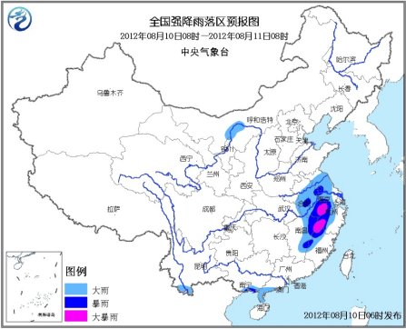 [提要] 中央氣象臺8月10日6時發(fā)布暴雨藍(lán)色預(yù)警:預(yù)計10日8時至11日8時,江蘇大部、安徽中南部、江西東部、浙江西部、福建西北部、廣西南部、廣東南部、云南南部以及內(nèi)蒙古河套地區(qū)等地有大到暴雨,其中,安徽南部、江西東北部、浙江西部等地的部分地區(qū)有大暴雨(100~200毫米);上述部分地區(qū)并伴有雷暴大風(fēng)等強對流天氣。