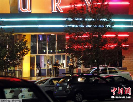 當地時間2012年7月20日,美國丹佛市舉行《蝙蝠俠前傳3:黑暗騎士崛起》的首映現場發生槍擊事件,造成12人死亡,58人受傷。圖為槍擊案現場。