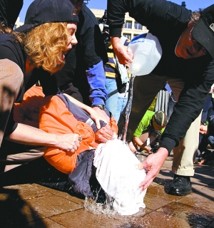 美國反對酷刑的示威者模仿“水刑”(資料圖)