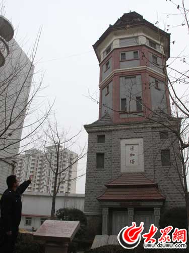 [提要] 1月16日,我們來到位于緯六路高架橋下的濟(jì)南機(jī)務(wù)段,從機(jī)務(wù)段的東門進(jìn)去,遠(yuǎn)遠(yuǎn)就看到了這座水塔。這座水塔給人的第一印象就是“很特別”,特別到想急切的想要了解它。于是,告別了奮戰(zhàn)在春運(yùn)一線的火車司機(jī)們,我們來到水塔旁邊,仔細(xì)端詳它、欣賞它。