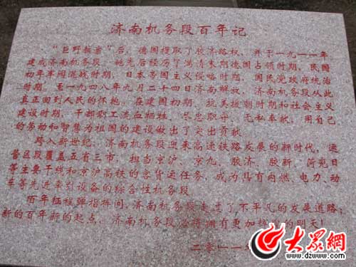 水塔南側(cè)大門外面的濟(jì)南機(jī)務(wù)段百年記