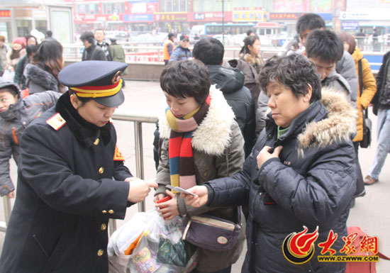 [提要] 1月20日,濟南的氣溫降到了0℃以下。寒冷的風依然沒有擋住旅客回家過年的腳步,也沒有讓火車站的工作人員放松迎接乘客的神經。