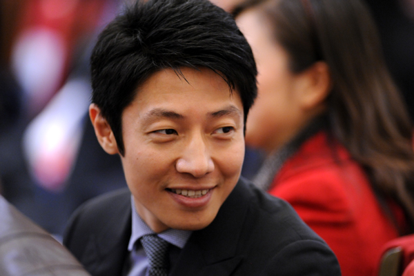 2012年3月14日11時,溫家寶總理在人民大會堂三樓金色大廳與中外記者見面并答問。圖為中央電視臺記者撒貝寧在現場。陳競超 攝