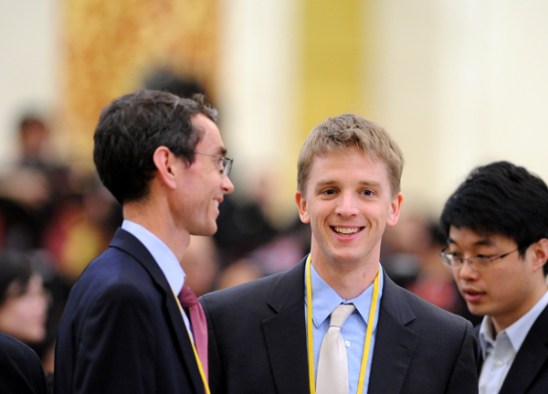 2012年3月14日11時,溫家寶總理在人民大會堂三樓金色大廳與中外記者見面并答問。圖為外國記者在現場。陳競超 攝