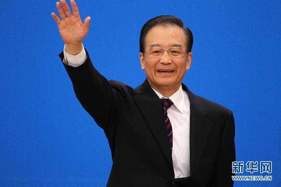3月14日,國務院總理溫家寶在北京人民大會堂與中外記者見面,并回答記者提問。這是溫家寶步入會場時與媒體記者打招呼。 新華社記者 陳建力攝