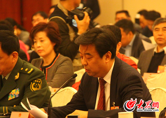 在十一屆全國人大五次會議山東代表團審議現場,全國人大代表、山東如意集團有限公司董事長邱亞夫發言。