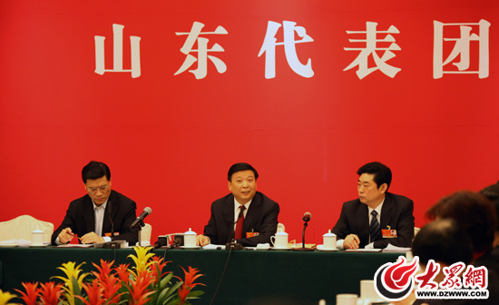 全國人大代表、山東省委副書記、省長姜大明現(xiàn)場回答記者的提問。