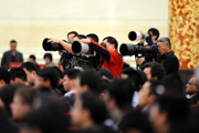 攝影記者架著“長槍短炮”大顯身手