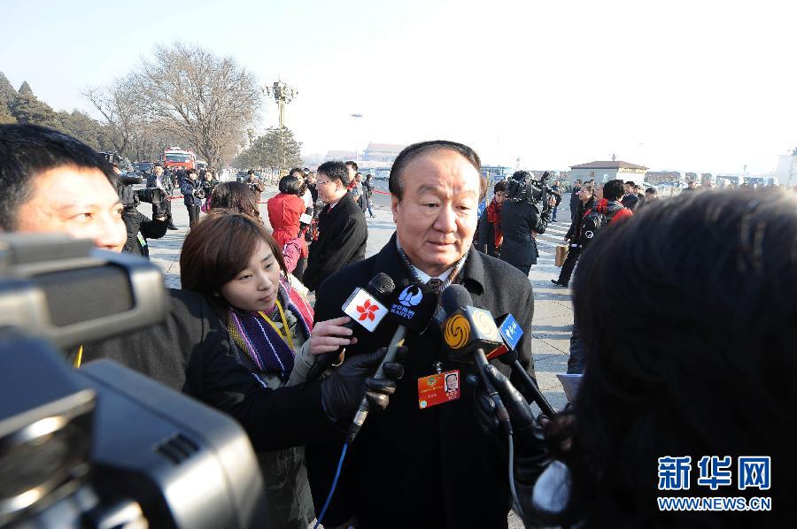 3月13日,中國人民政治協商會議第十一屆全國委員會第五次會議在北京人民大會堂閉幕。這是全國政協委員蔣效愚接受記者采訪。 新華社記者楊宗友 攝