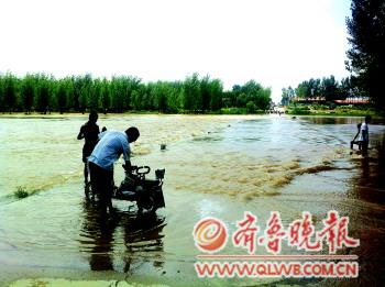 [提要] 4日中午,濰坊安丘吾山鎮一家四口在經過凌河附近冢子坡橋時被急流連車帶人沖入橋下,致使兩人遇難,兩人失蹤。附近村民還反映,冢子坡大橋幾乎每年汛期都會被河水漫過,但今年上游水庫泄洪時間比較長,河水比往年深很多。