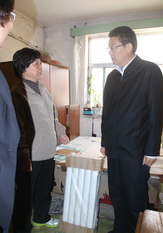 陳葉翠跟歷下區區長田慶盈(右)到居民家中檢查暖氣安裝情況。