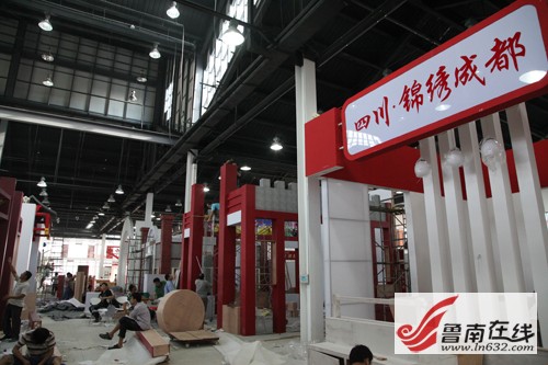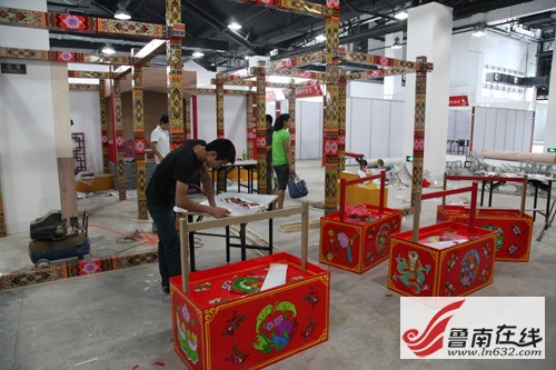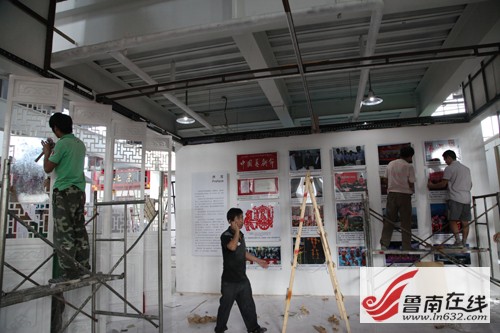 魯南在線訊 第二屆中國非物質(zhì)文化遺產(chǎn)博覽會將于9月6日至10日在臺兒莊古城舉行,將展示來自全國33個省、自治區(qū)、直轄市及港澳臺地區(qū)767個省級以上優(yōu)秀非物質(zhì)文化遺產(chǎn)項目,將以展會結(jié)合的形式,運用實物、文字、圖片、視頻多媒體等多種展覽、展演手段,展現(xiàn)人類文化的多樣性和非物質(zhì)文化遺產(chǎn)的保護(hù)成果。目前各項籌備工作進(jìn)入沖刺階段,來自全國各地的布展小組已經(jīng)陸續(xù)來到棗莊,開始布展工作。9月3日下午,記者走進(jìn)非遺博覽會會展中心,走近了正在裝修展位的工人師傅們。