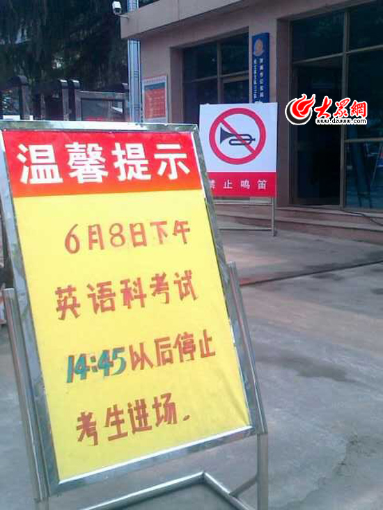 [提要] 距離考生進場還有四十多分鐘,濟南七中考點上就將提醒牌擺放了出來,提醒廣大考生及時進場。