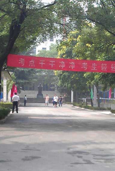 [提要] 離考試結(jié)束還有半小時,濟(jì)南七中考點已有很多考生提前交卷從考場走出,在校園等待區(qū)悠閑的轉(zhuǎn)悠。