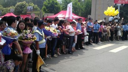 [提要] 距離結(jié)束鈴聲打響還有十分鐘,家長們已經(jīng)聚集到學(xué)校門口,有的捧著鮮花,有的抱著布熊,有的擎著氣球,有的舉著相機(jī),等待著孩子們出來,第一時間送上祝福