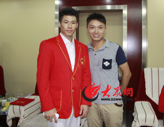 采訪后,大眾網記者與奧運冠軍張成龍合影。