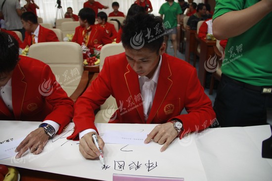 奧運健兒在留言簿上簽名留言。