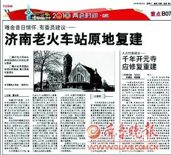 圍繞著這座消失了的獨具特色的哥特式建筑群,很多市民、專家甚至政府部門都提出了很多意見,天橋區政府也提出了在火車站新規劃的北廣場“復建”火車站鐘樓的設想,并多次就此事與鐵路部門進行了溝通。