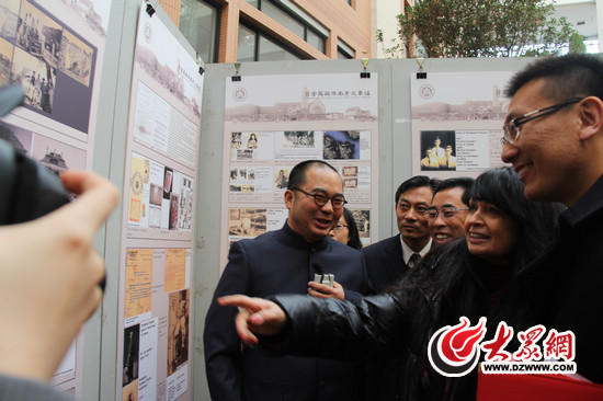 大眾網濟南12月5日訊(記者 王磊 趙洪棟 隋喬)“祖父珍藏的老照片在濟南展出一直是全家人愿望,這些照片屬于大家……”今天上午,濟南老火車站設計者的孫女西維亞夫婦來到山東建筑大學圖書館,參加“菲舍爾與濟南老火車站暨山東建筑大學傳承建筑歷史文化實踐”圖片展。在發言最后,當西維亞用漢語說出“謝謝”時,她被現場觀眾的熱情感動得再次落淚,在與市民分享這些百年老照片過程中,西維亞說,自己“很幸福”,明年山東建筑大學鐵路建筑博物館建成時,她希望能再次來到美麗的濟南。