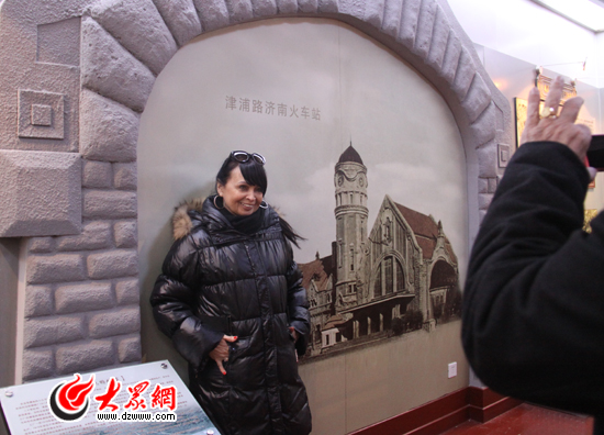 在津浦火車站的背景墻前,西維亞的丈夫幫她拍照留念。