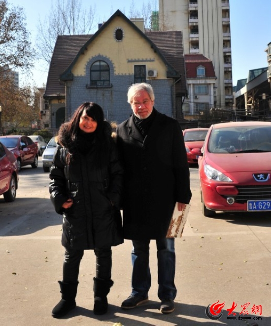 12月8日上午,西維亞女士和丈夫皮特先生來到濟南火車站東側車站街3號的一棟百年的德式建筑,陪著他們的是老朋友山東建筑大學副校長劉甦、副教授姜波。此前為了要找到祖父母的故居,西維亞早就把家族照中的老房子通過網絡發給過姜波,經過對故居的建筑特征進行了細致的研究,并與火車站附近的德式建筑一一比對之后,姜波找到了這所同老照片中相似度幾乎為百分之百的老建筑,再經過劉甦副校長的仔細考證后,他們才帶著西維亞來到來此確認,當時這里就是菲舍爾的家。
