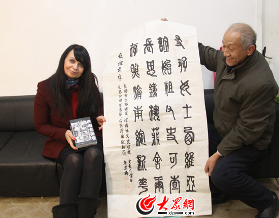 今天,濟南民俗專家牛國棟和文史專家唐景椿還特意趕來與西維亞相見,并送給西維亞記載濟南民俗的《濟南乎》、《濟南·青島經典歷史建筑游》和《濟南老街巷》三本圖書。