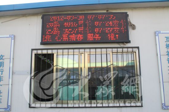 調(diào)度室外的電子顯示屏,高峰期每隔兩三分鐘就會發(fā)一趟車。