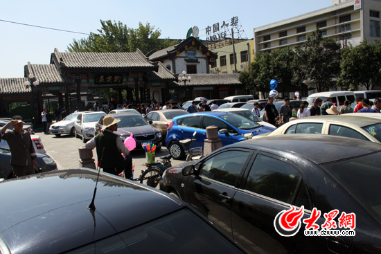 濟(jì)南市趵突泉公園北門被游客的車輛堵得水泄不通。