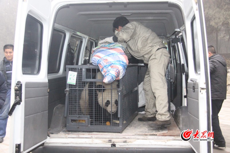 來(lái)自四川臥龍大熊貓基地的2只大熊貓乘坐飛機(jī)抵達(dá)濟(jì)南。