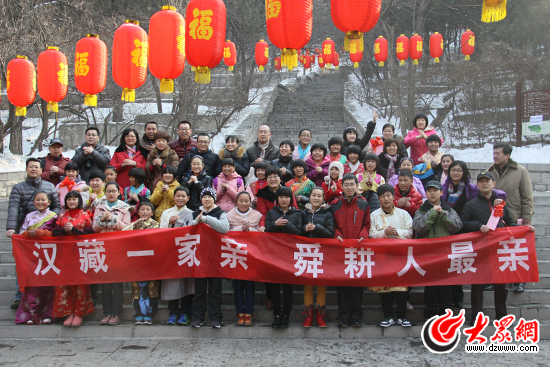參加“漢藏心連心、牽手迎新春”活動的西藏中學(xué)、舜耕小學(xué)的師生、家長一起在千佛山合影。
