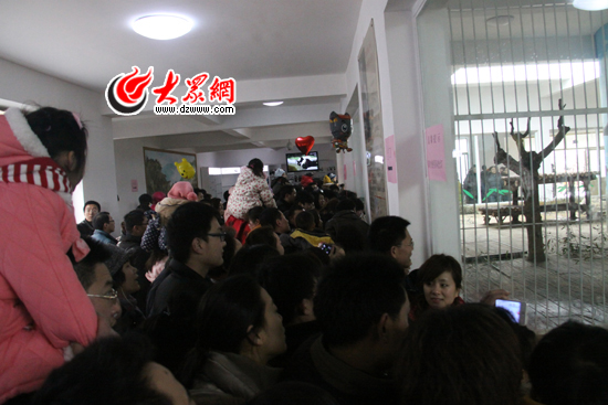 2月14日下午,濟(jì)南市動物園大熊貓館里擠滿了前來觀賞大熊貓的市民