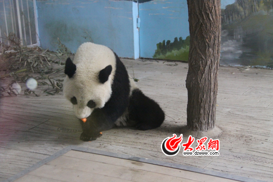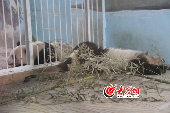 大眾網(wǎng)濟(jì)南2月15日訊(記者 赫洋)不少市民在春節(jié)假期中忙著走親訪友,兩只剛剛從四川來到濟(jì)南的“國寶”大熊貓?jiān)诖汗?jié)期間也沒閑著。雖然吃著每天6頓的加餐,可它們每天還要上9個(gè)小時(shí)的“班”,一點(diǎn)也不比上班族們“輕松”。而由于擔(dān)心游客的某些不文明舉動驚嚇或傷害到大熊貓,兩只小家伙自從來到濟(jì)南后,已經(jīng)半個(gè)月沒“出門”了。